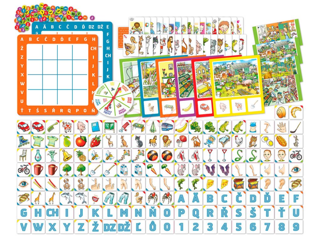na seznámení s číslicemi a písmenky, procvičení kognitivních schopností dítěte, logiky a také interakci, jak s ostatními dětmi, tak učitelem nebo rodičem. Ucelená sada her nabízí výtečný poměr mezi cenou a užitnou