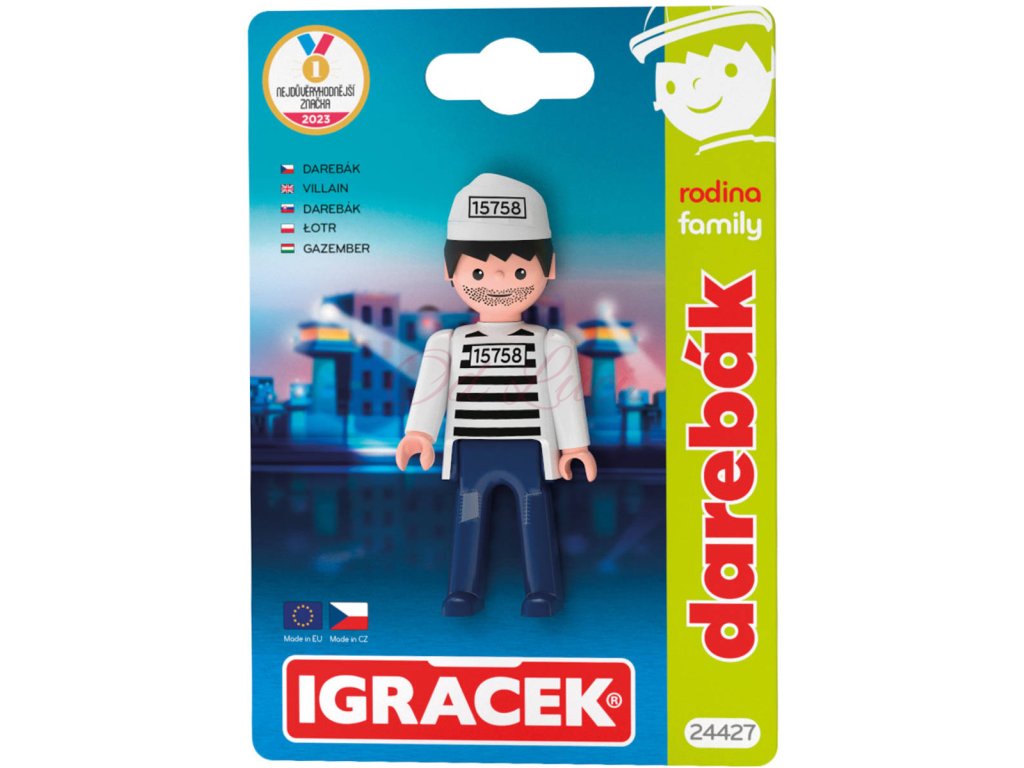 Igráček Darebák vyloupil banku a utíká před Igráčky policisty. Podaří se jim ho chytit? Hra s figurkami podporuje dětskou představivost, kreativitu a rozvíjí jemnou motoriku. Legendární postavička od roku 1976. Figurka bez příslušenství. Vyrobeno v ČR.
