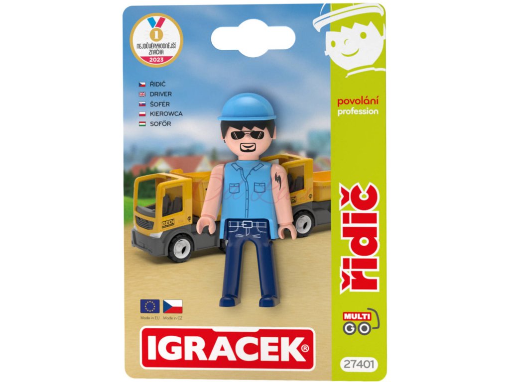 Nejen autíčka MultiGO potřebují pořádného řidiče! Igráček Řidič je trochu drsňák, ale jinak je to dobrák od kosti. Dopravní předpisy umí na jedničku a náklad vždy doveze v čas. Každý pořádný náklaďák potřebuje drsného řidiče, který si dokáže poradit v jakékoli situaci. Hra s Igráčky podporuje dětskou představivost, kreativitu a rozvíjí jemnou motoriku. Legendární postavička od roku 1976. Figurka bez příslušenství. Vyrobeno v ČR.