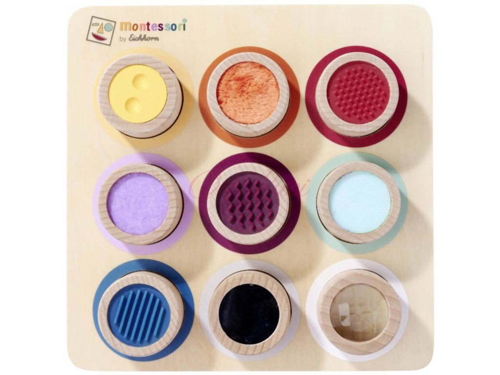 Vnímání je pro dítě důležitým smyslovým vývojem. Hra s různými povrchy a materiály podporuje hmat. Naše Montessori hmatová deska má 9 senzorických válců, ve kterých si dítě může osahat povrchy a textury. Montessori hmatová deska je vyrobena ze 100% bukového dřeva a překližky s certifikací FSC a je vhodná pro děti od 3 let.