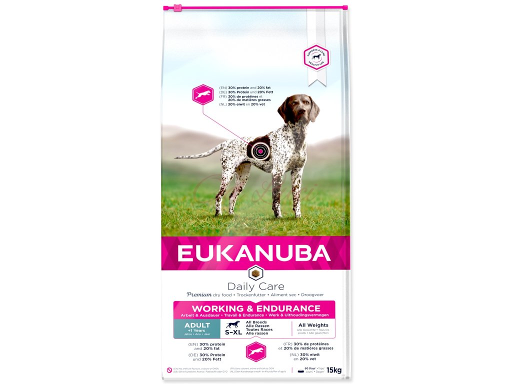 Je sestaveno tak, aby poskytovalo rovnoměrné množství energie a živin pro špičkový výkon. Psi, kteří mají hodně pohybu díky pracovním a loveckým zkouškám, potřebují více než každodenní stravu, aby si udrželi dobré zdraví a mohli podávat vrcholové výkony. To samé platí pro březí a kojící feny a pro psy s podváhou.