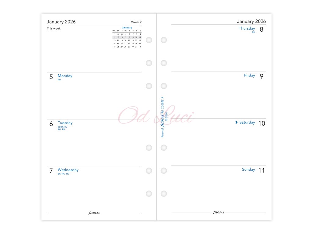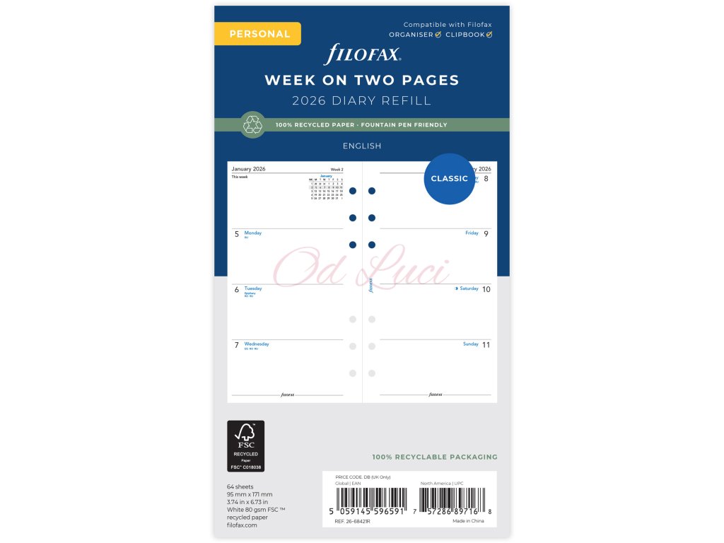 Filofax, Kalendář 2026 osobní, týden/2 strany, AJ, recyklovaný