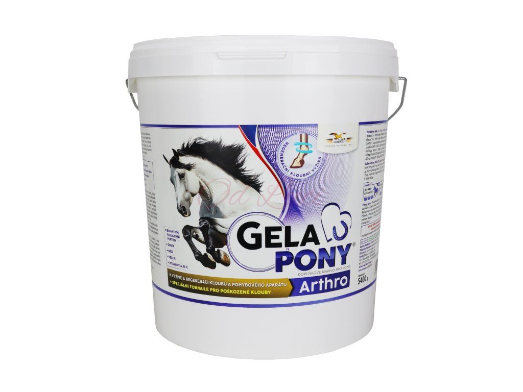 Koncentrované doplňkové krmivo s vysokým obsahem kolagenu CHP a vitamínů k regeneraci kloubního systému koní. Gelapony Arthro je koncentrované doplňkové krmivo s vysokým obsahem kolagenu CHP a vitamínů. Gelapony Arthro regeneruje tkáně kloubního systému, posiluje kosti, vazy a šlachy.