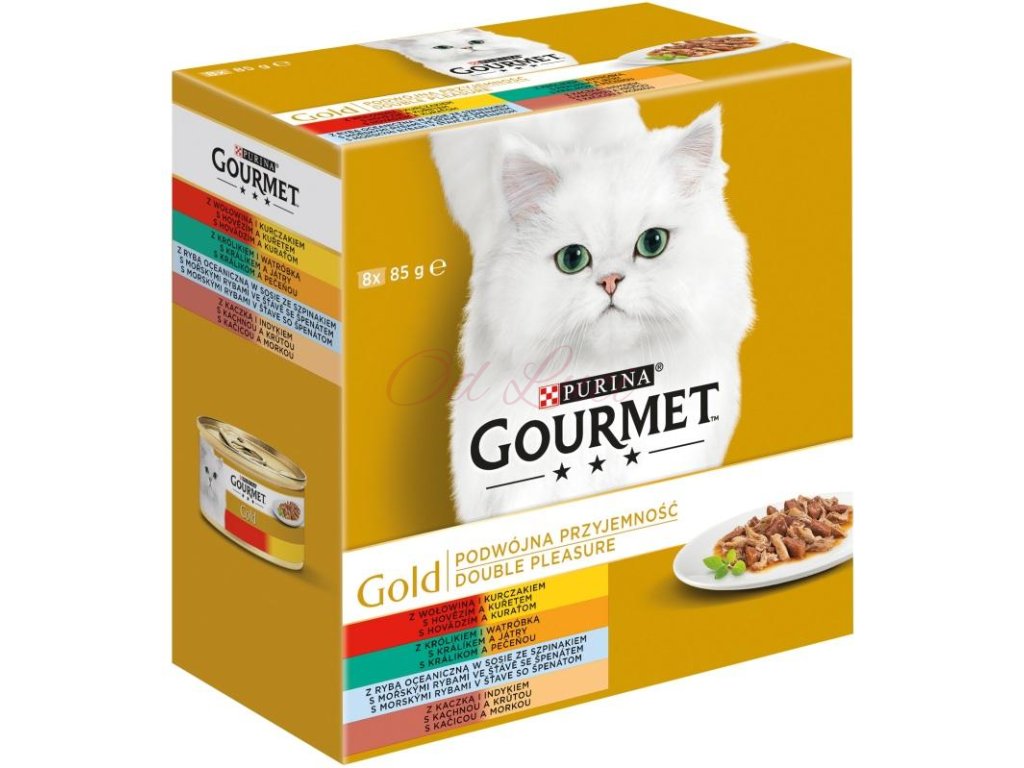 Gourmet Gold Double Pleasure je skvělá kombinace lahodných kousků a šetrně uvařených jemných plátků.