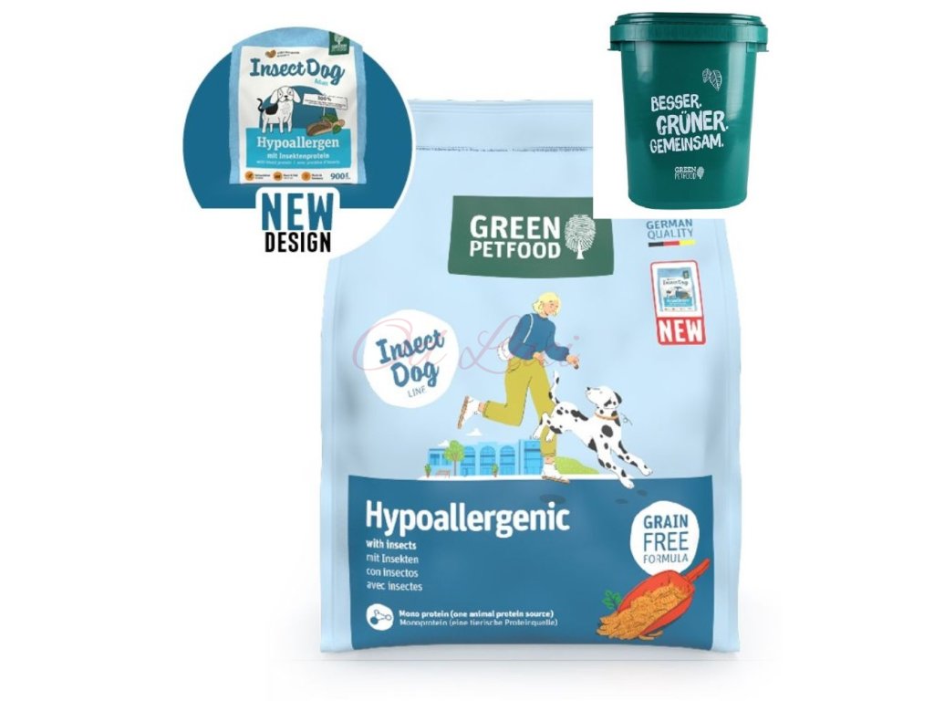 Ideální alternativa pro ty psí jedince, kteří trpí alergiemi a intolerancemi na běžné druhy mas nebo masitou stravu: Green Petfood InsectDog hypoalergenní obsahuje 100% hmyzí bílkoviny, která slouží jako zdroj kvalitních stavebních kamenů bílkovin a mastných kyselin. Hmyz se do krmiv pro psy používá velmi zřídka, krmivo je tak hypoalergenní a výborně ho snáší i velmi citlivá zvířata. Chov hmyzu navíc způsobuje nízké emise CO2, a proto je výroba krmiva šetrná k životnímu prostředí. Kromě hmyzí bílkoviny, která představuje jedinečný zdroj živočišných bílkovin, obsahuje krmivo zeleninu, slunečnicový olej a vyváženou kombinaci životně důležitých látek. Obiloviny nejsou v krmivu obsaženy. Organismus psa tak bude zásoben potřebnými vitamíny, minerálními látkami a stopovými prvky. Krmivo obsahuje prvotřídní suroviny a při výrobě nebyly použity žádná barviva, ochucovadla či konzervační látky.