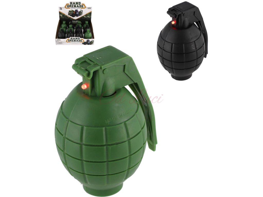 Ruční dětský plastový granát je určen pro kluky, kteří si rádi hrají na vojáky. Granát vydává reálné zvuky granátu a bliká. Hračka na baterie, se světlem a zvukem. 2 barvy.