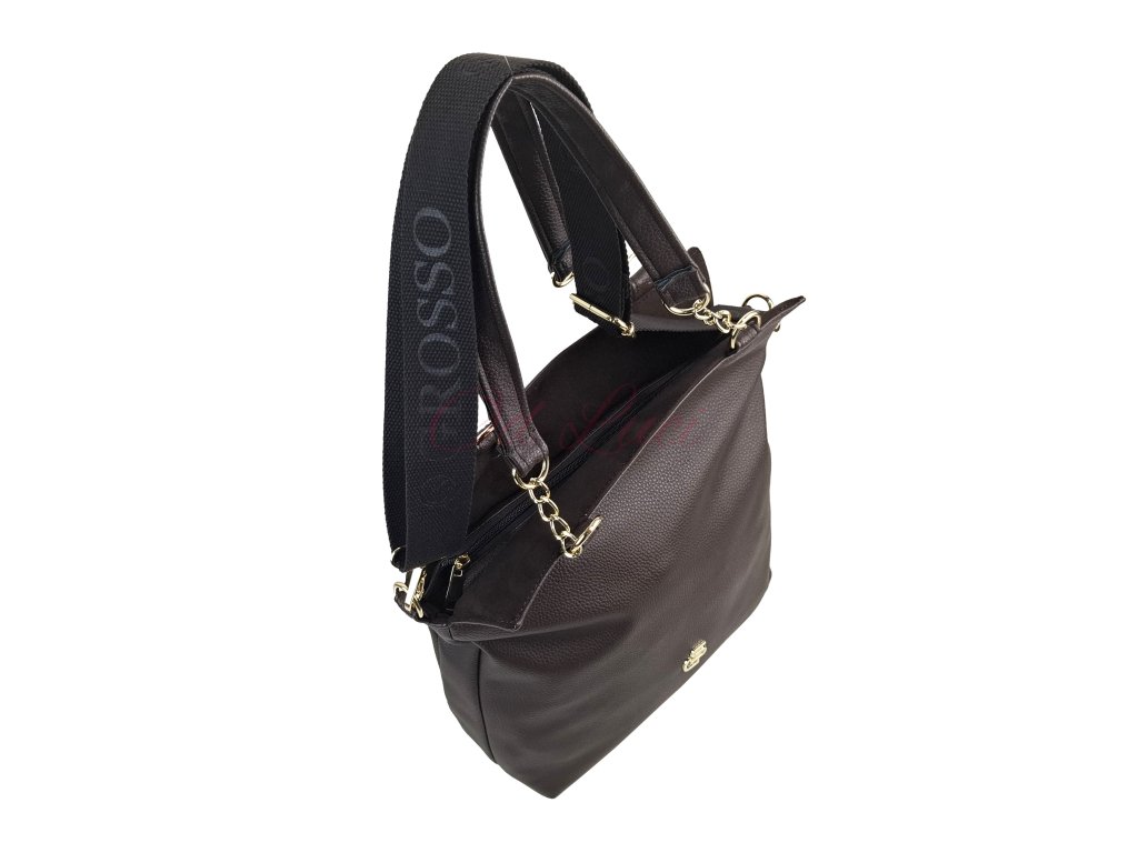 Stylová, moderní a dokonale praktická – přesně taková je tato čokoládově hnědá kabelka přes rameno od slovenského výrobce GROSSO. Elegantní hnědé provedení v teplém čokoládovém odstínu doplňují zlaté kovové detaily, které kabelce dodávají luxusní vzhled a nadčasový šmrnc.