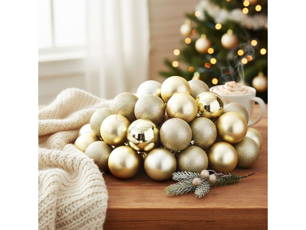 HOMESTYLING Vánoční ozdoby koule sada 26 ks šampaň KO-CAN302050