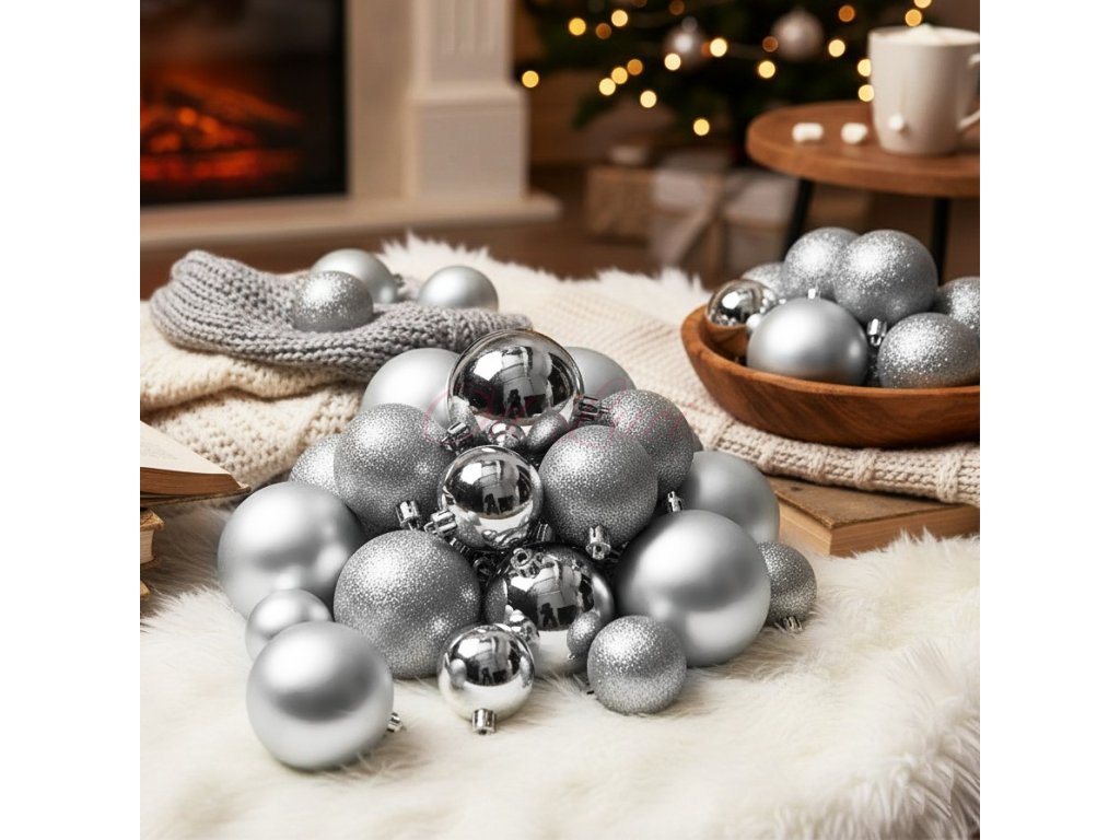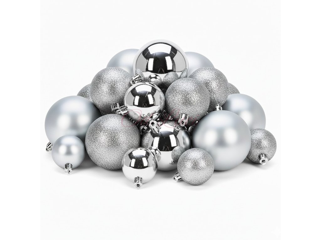 HOMESTYLING Vánoční ozdoby koule sada 26 ks stříbrná KO-CAN302010