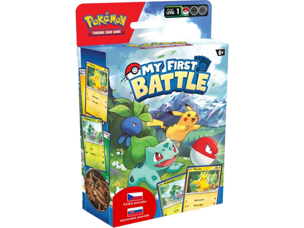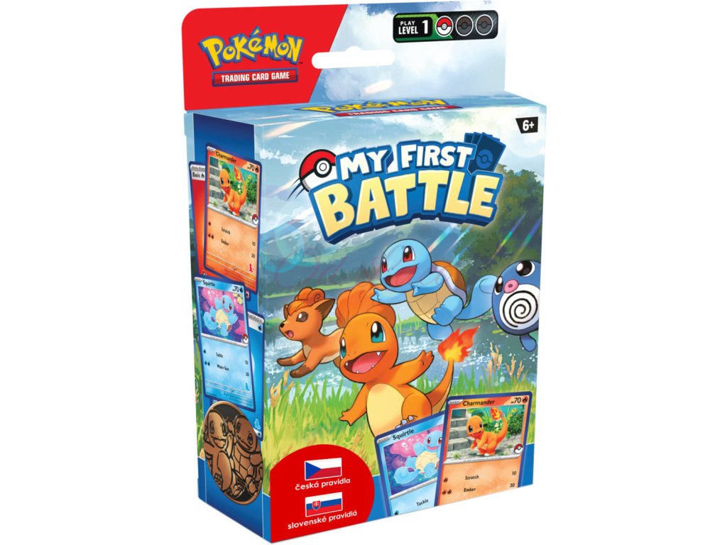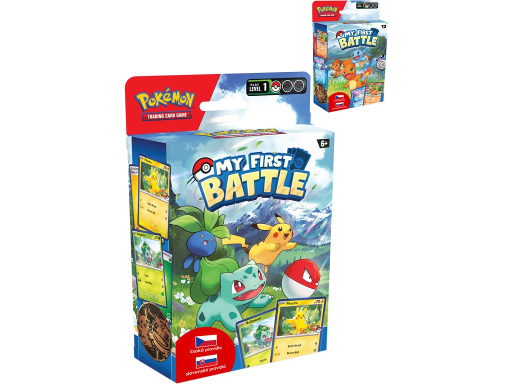 My First Battle - Tvoje dobrodružství v Pokémon TCG právě začíná! Dokonalý první kro do světa karetní hry Pokémon. Balení obsahuje dva mini balíčky s českými a slovenskými pravidly, určené pro hru dvou hráčů. 2 varianty provedení.