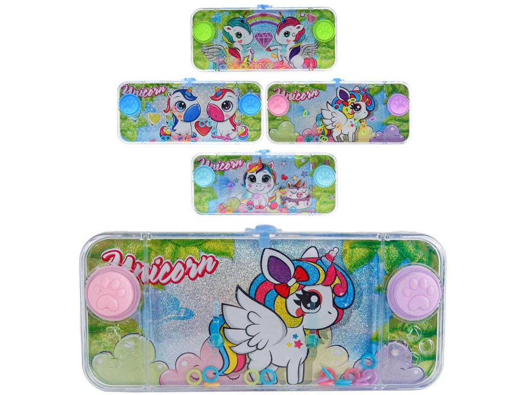 Klasická dětská vodní retro hra - navlékání kroužků, s motivem "Unicorn", ve čtyřech variantách provedení. Mačkáním tlačítek umísti všechny navlékací kroužky na hroty.