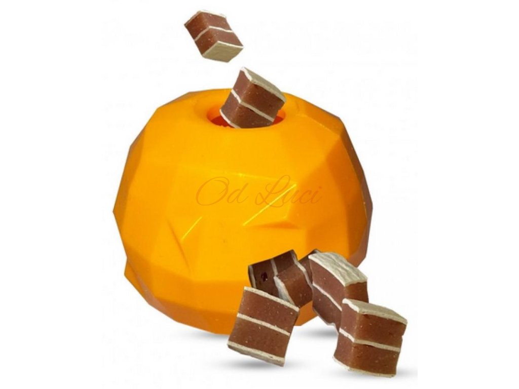 Hračka pro psy plemen všech velikostí, aport, plovoucí. Míč lze naplnit různými pamlsky. Během hry postupně vypadávají pamlsky otvorem míče. Díky výrazné barvě je míček snadno viditelný z dálky a je také ideální hračkou pro aportování, trénink a cvičení venku za každého počasí.
