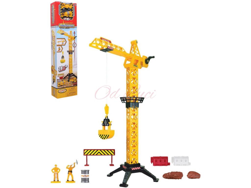 Jeřáb stavební manuální ovládání 57cm set se 2 pracovními auty a doplňky