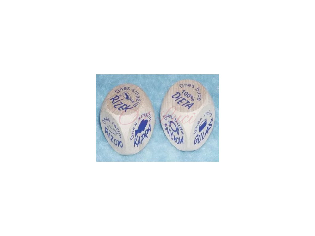 Kostka (30 mm) na které jsou tyto nápisy: