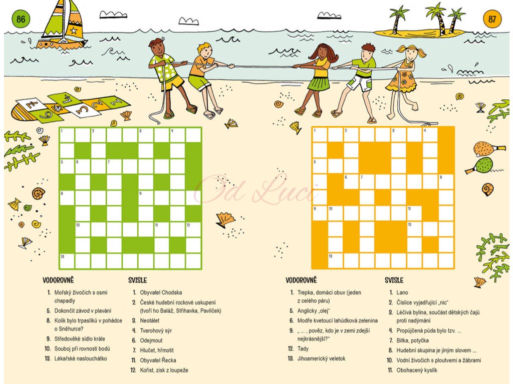 Křížovky pro děti, na téma Prázdniny. Sešit malého formátu obsahuje více než 100 křížovek s řešením na konci titulu.