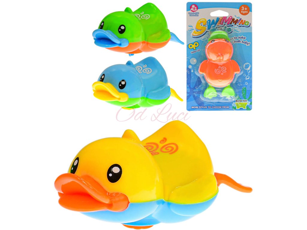 Mechanická plovoucí hračka pro děti – kačenka - se natahuje otáčením hodinového strojku po směru hodinových ručiček, poté začne kačenka plavat a máchat nožičkami. Během hry se rozvíjí zrak, hmatové vjemy, obratnost, koordinace pohybů a jemná motorika dítěte. Tato hračka je ideální jako vývojová pomůcka pro děti od 9 měsíců. Vaše dítě ji může sledovat, plazit se za ní nebo za ní běhat a užívat si její pohyb.