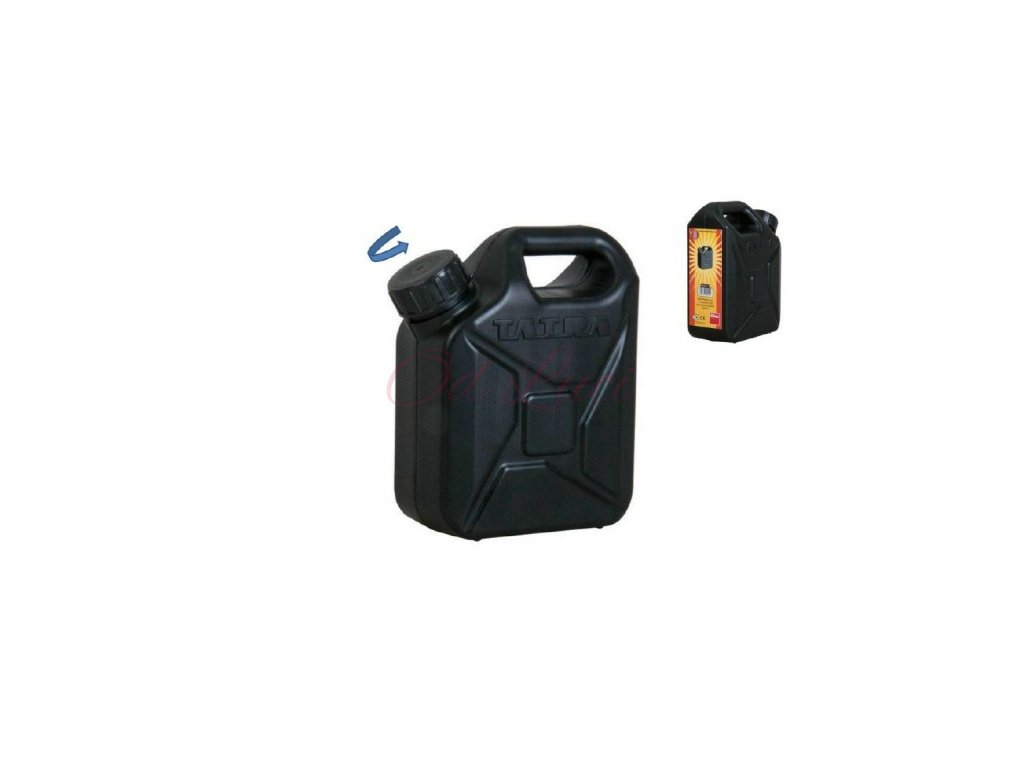Dětský šedý kanystr značky Tatra na benzin s funkčním uzávěrem - nezbytný doplněk pro všechny malé motoristy na dlouhé cesty.
