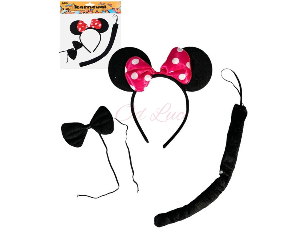 Černá myška (Minnie) - Kostýmové doplňky k obleku na karneval, které z vás švihem vykouzlí zvířátko. Součástí čelenka s ušima, mašlička a ocásek.