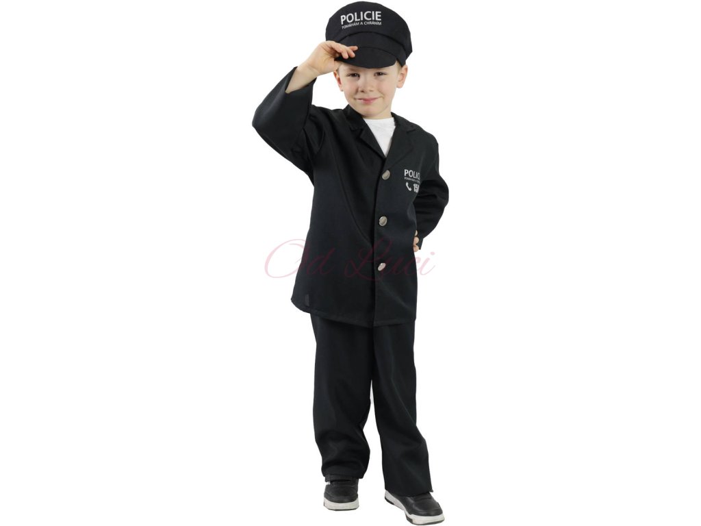 Staň se policistou v cuku, letu! Jakmile si oblečeš blůzu s nápisem POLICIE, kalhoty a čepici, v tu chvíli jsi připraven pomáhat a chránit! Kostým je určen pro děti ve věkovém rozmezí 6-8 let (116-128 cm).