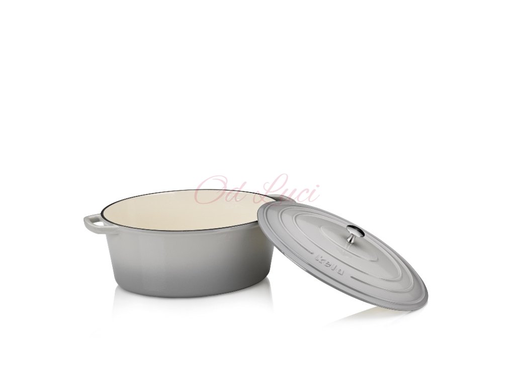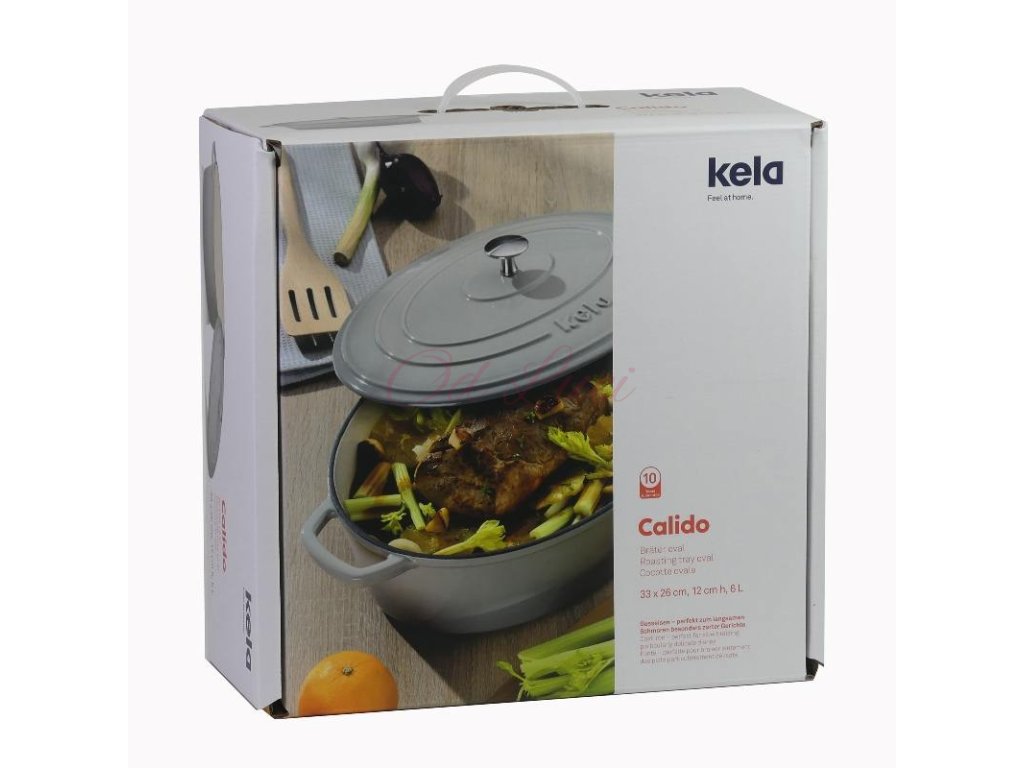 KELA Pekáč litinový oválný s poklicí Calido 36x29 cm světle šedá