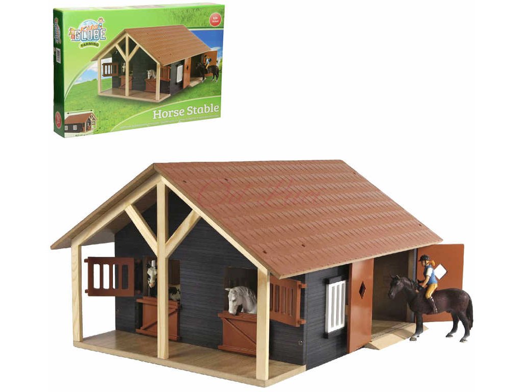 Tato skvělá stáj pro koně od Kids Globe obsahuje 2 koňské boxy, za kterými je také velká úložná místnost, například pro skladování balíků sena. Střechu lze otevřít. Boxy pro koně a skladiště mají dveře, které lze