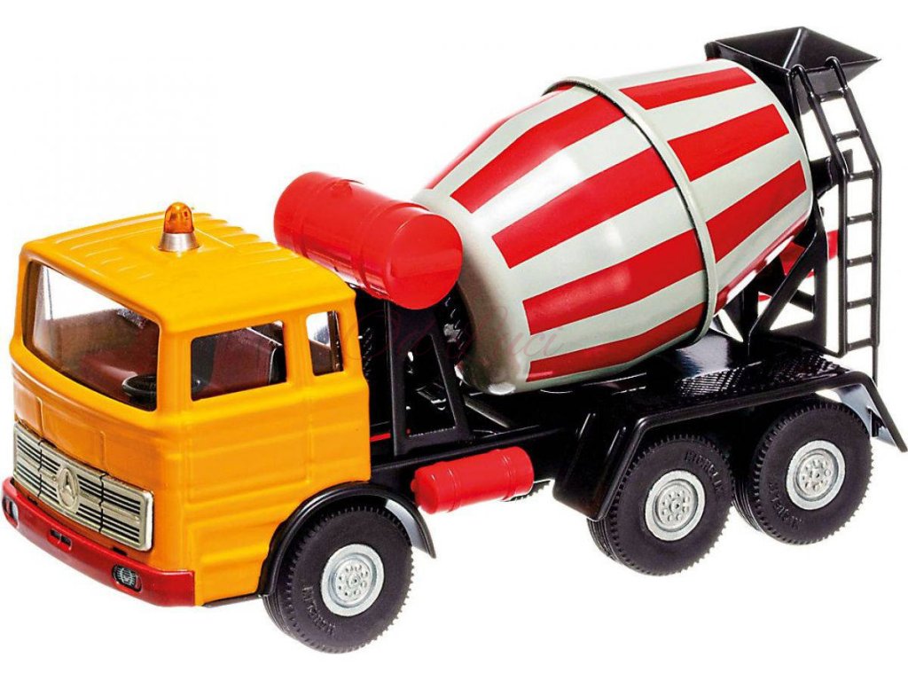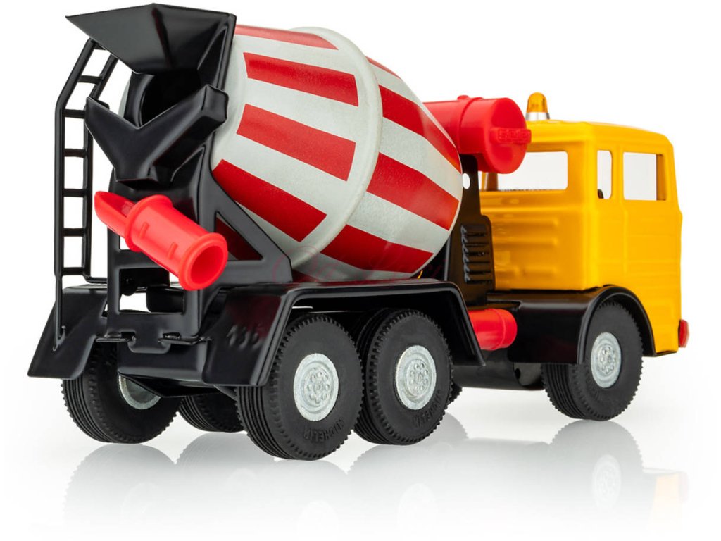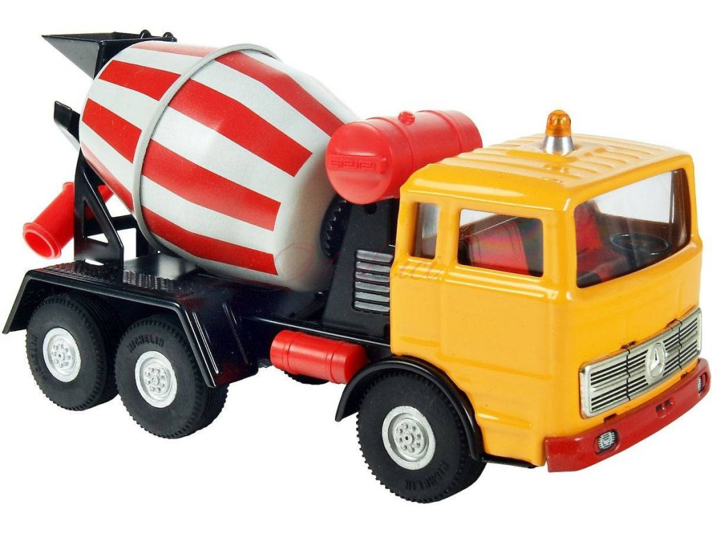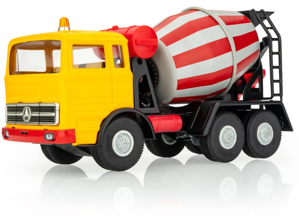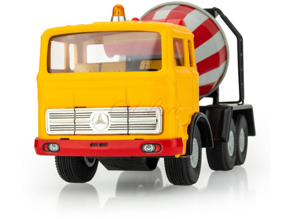 Kvalitně zpracovaný kovový model pracovního vozu Mercedes domíchávač. Na vozu je umístěno míchadlo, které se za jízdy točí.