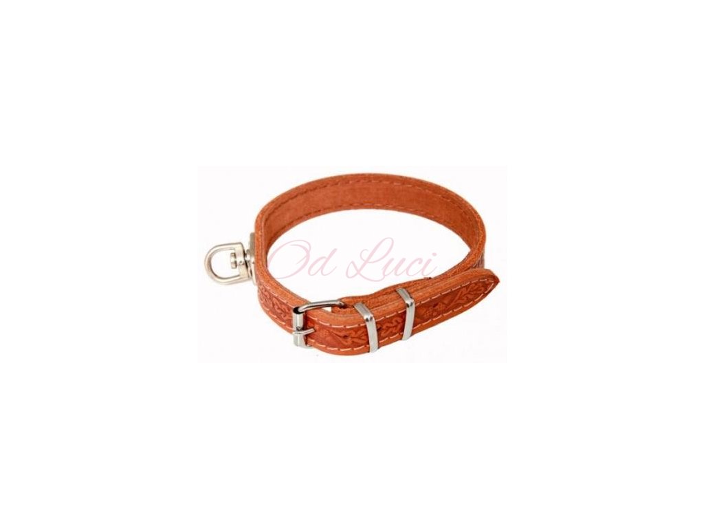 Kožený obojek barvářský se vzorem koňak 2×40cm