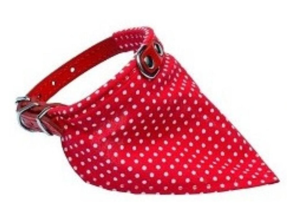 Hladký kožený obojek je vyroben z kvalitní kůže, pro pevnost je obšitý nití do barvy. Je vybaven svařovanými déčky, tak dosahuje maximální pevnosti. Jeho ozdobou je bavlněný šátek v různém designu.