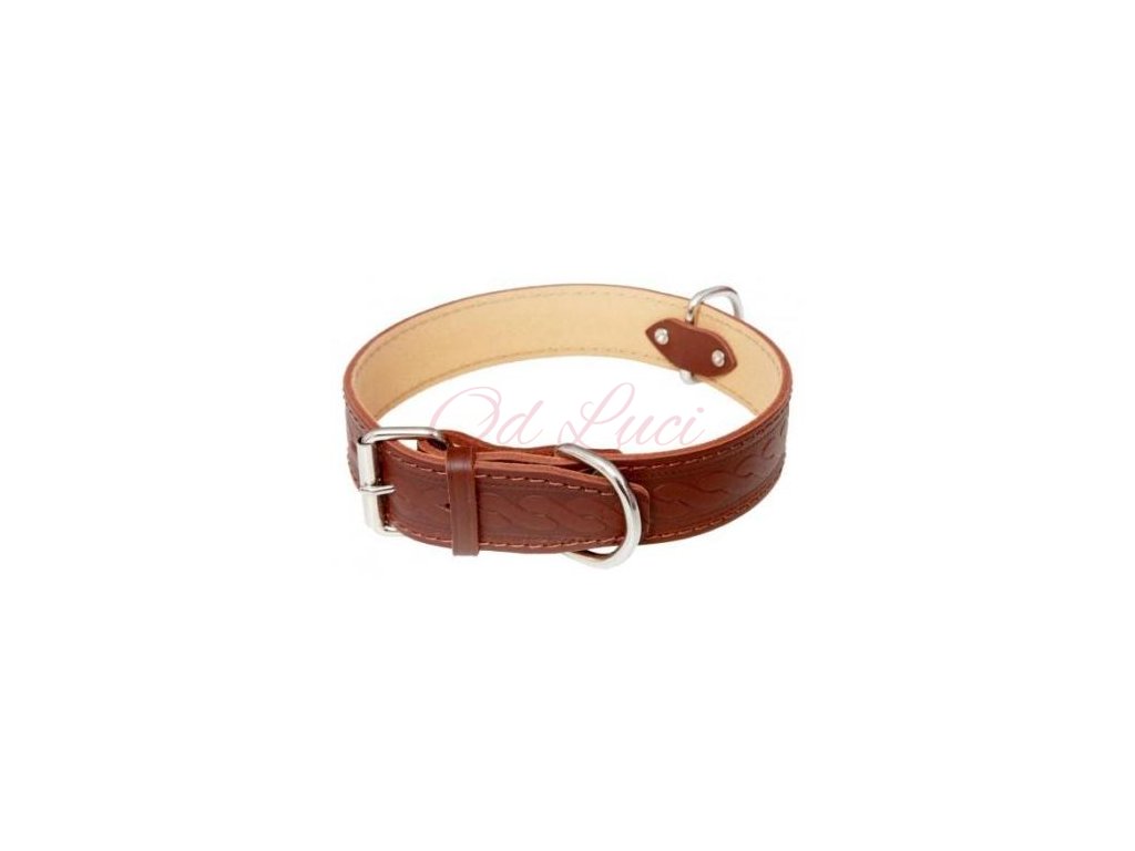 Kožený obojek vyrobený z kvalitní vrchové hovězí kůže dosahuje velké pevnosti, je zdoben vlisem a prošitím. Je určen pro střední a velká plemena.