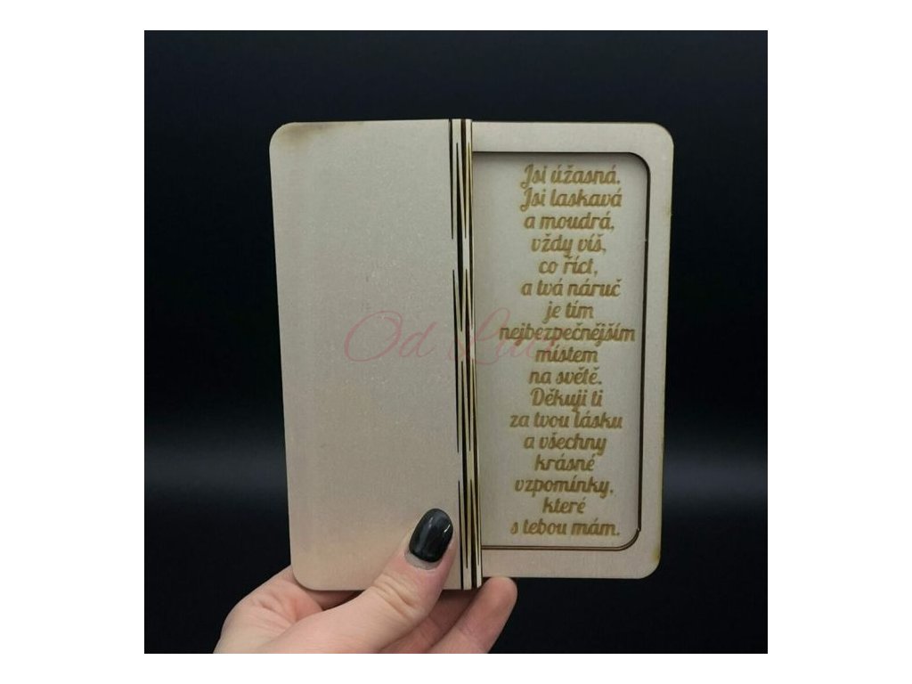 Vyjádřete své city milované babičce jedinečným dárkem! Tato dřevěná krabička s citátem - "Nejdražší babičko" v podobě knihy ukrývá nádherný citát plný vděčnosti a lásky. Perfektní dárek k narozeninám, Vánocům nebo jen tak z lásky.