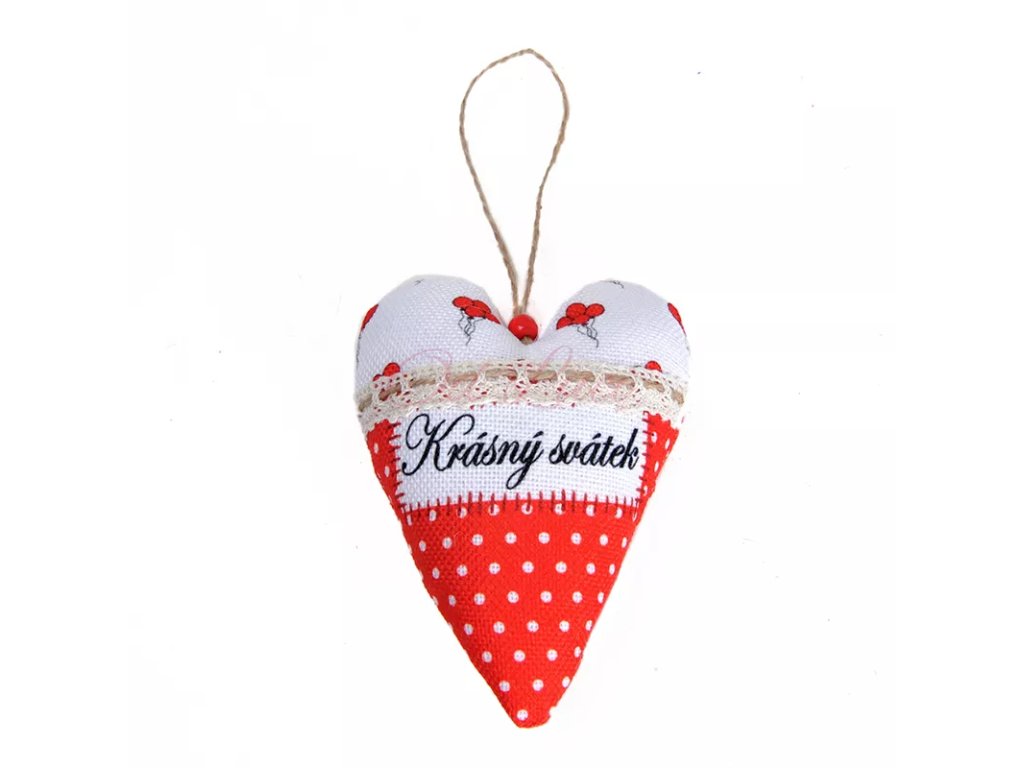 Potěšte svoje nejbližší k svátku tímto krásným srdíčkem. Spolu s polyesterovou výplní jsme dovnitř přidali nádherně vonící suché květy levandule.