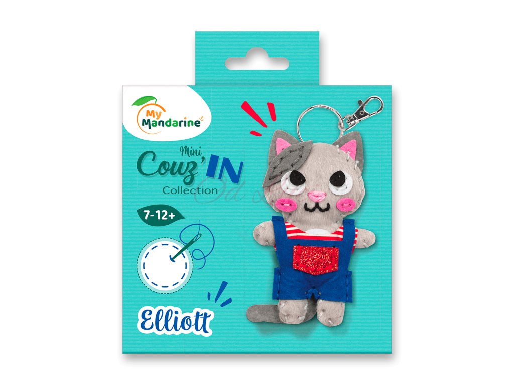 Kreativní sada Avenue Mandarine Přívěsek k ušití z kolekce Couz'IN, která umožňuje dětem objevení světa šití. Předem nastříhané kusy měkké barevné plsti s malými otvory usnadňují dětem použití jehly.