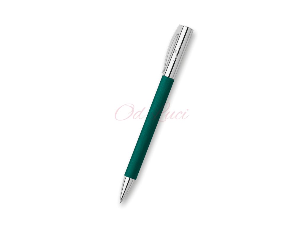 Kuličkové pero Faber-Castell Ambition Precious Resin Soft Teal s tělem z broušené pryskyřice v kombinaci s doplňky z pochromovaného leštěného kovu.