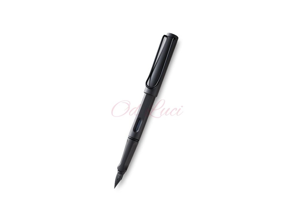 Plnicí pero Lamy Safari v provedení Matt Charcoal má tělo z tvrzeného ABS plastu, nasazovací víčko a odpružený kovový klip. Úchopová zóna je ergonomicky upravená, hrot je z nerezové oceli.