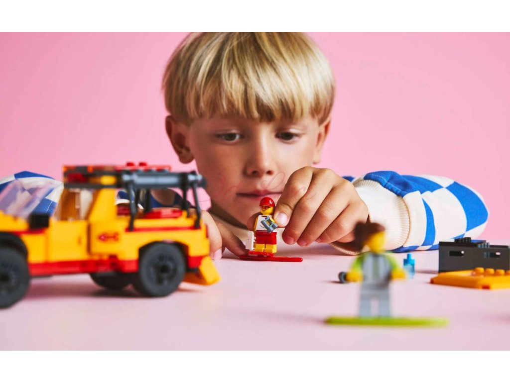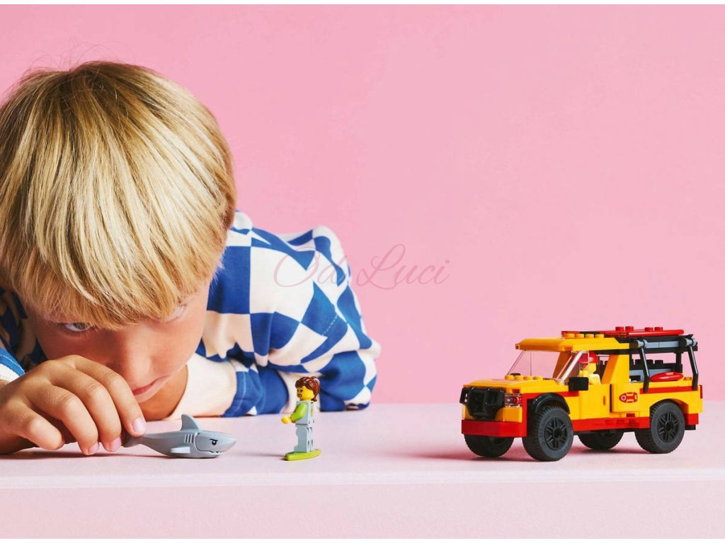 Se stavebnicí Záchranné auto pro plavčíka se děti od 6 let vydají na záchranné dobrodružství. Tento parádní model vozidla s otevíracími dveřmi, korbou a střešním oknem je plný pomůcek pro první pomoc na pláži, včetně 2 surfovacích prken, ploutví, dalekohledu a lékárničky. Součástí stavebnice jsou také minifigurky plavčíka a surfaře a figurka žraloka pro nápadité hraní a vyprávění příběhů. Součástí této hračky s motivem pláže je podrobný tištěný návod na stavění a 3D návod v aplikaci LEGO Builder, což je digitální průvodce stavěním s intuitivními nástroji přibližování a otáčení. Umožní dětem prohlížet si modely ze všech úhlů, zatímco na nich pracují.