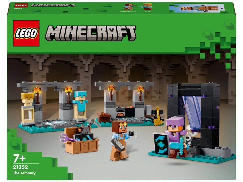 Milovníci hry Minecraft od 7 let si oblíbí akční stavebnici Zbrojnice. Představuje skvělý dárek pro děti a je ideálním úvodem do kreativního světa dobrodružných stavebnic LEGO Minecraft. Součástí této stavebnice na motivy videohry Minecraft jsou 2 oblíbené postavy: akční hrdinka Alex se štítem a diamantovým mečem a pracovitý kovář brnění. Sada se skládá ze 3 částí: Z kovárny s kovadlinou, pecí, brusným kamenem a kotlíkem s lávou, ze zbrojnice s truhlou se zlatou sekerou, začarovaným trojzubcem, netheritovým mečem, štítem a dalšími prvky ze světa Minecraft a z portálu do Netheru s dveřmi, které malé stavitele dovedou k dalšímu dobrodružství. Děti mohou tuto dobrodružnou stavebnici propojit s dalšími sadami z řady LEGO Minecraft, například Přepadení v portálu do Netheru, která se prodává samostatně, a užít si ještě větší porci zábavy.