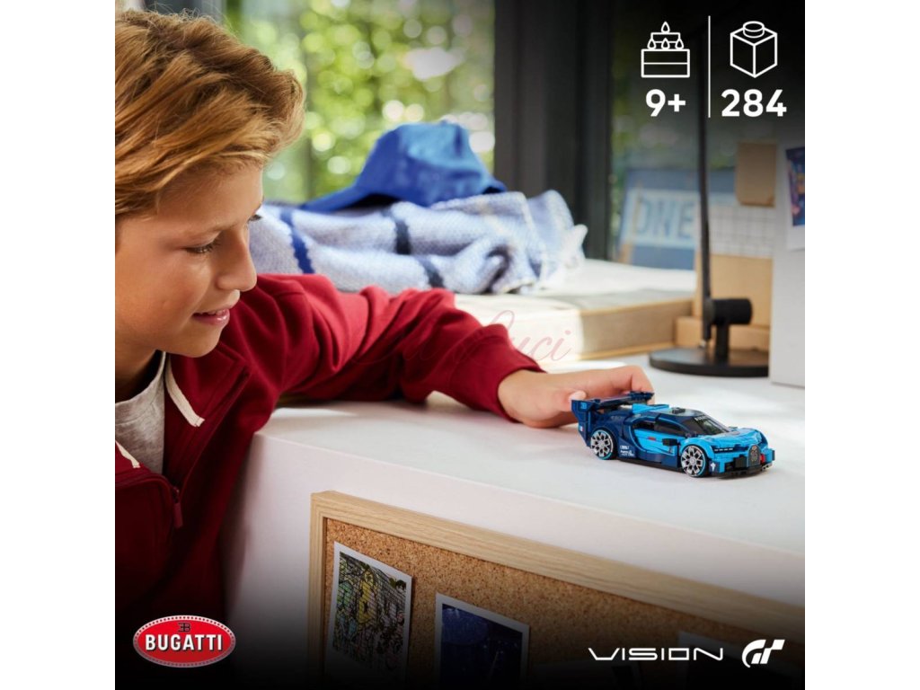 Holky a kluci od 9 let si mohou postavit úžasný model Hypersportovní auto Bugatti Vision GT, se kterým si užijí hodiny zábavného hraní a pak si jej hrdě vystaví. Tento luxusní model Bugatti zcela poprvé umožňuje fanouškům automobilů a série videoher Gran Turismo zblízka prozkoumat eleganci a výkon tohoto technického zázraku. Model vozu Bugatti se pyšní detaily inspirovanými vozem navrženým automobilkou Bugatti pro videohru Gran Gran Turismo z roku 2015. Patří mezi ně přední mřížka ve tvaru podkovy, zadní křídlo, charakteristických 8 světlometů, střešní ploutev a široké pneumatiky s potiskem „Michelin“. Součástí stavebnice je také minifigurka v oblečení Bugatti, kterou lze umístit do kokpitu a užít si s ní závody.