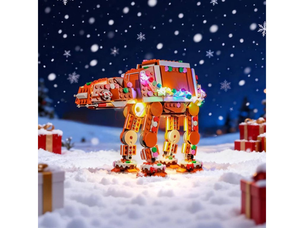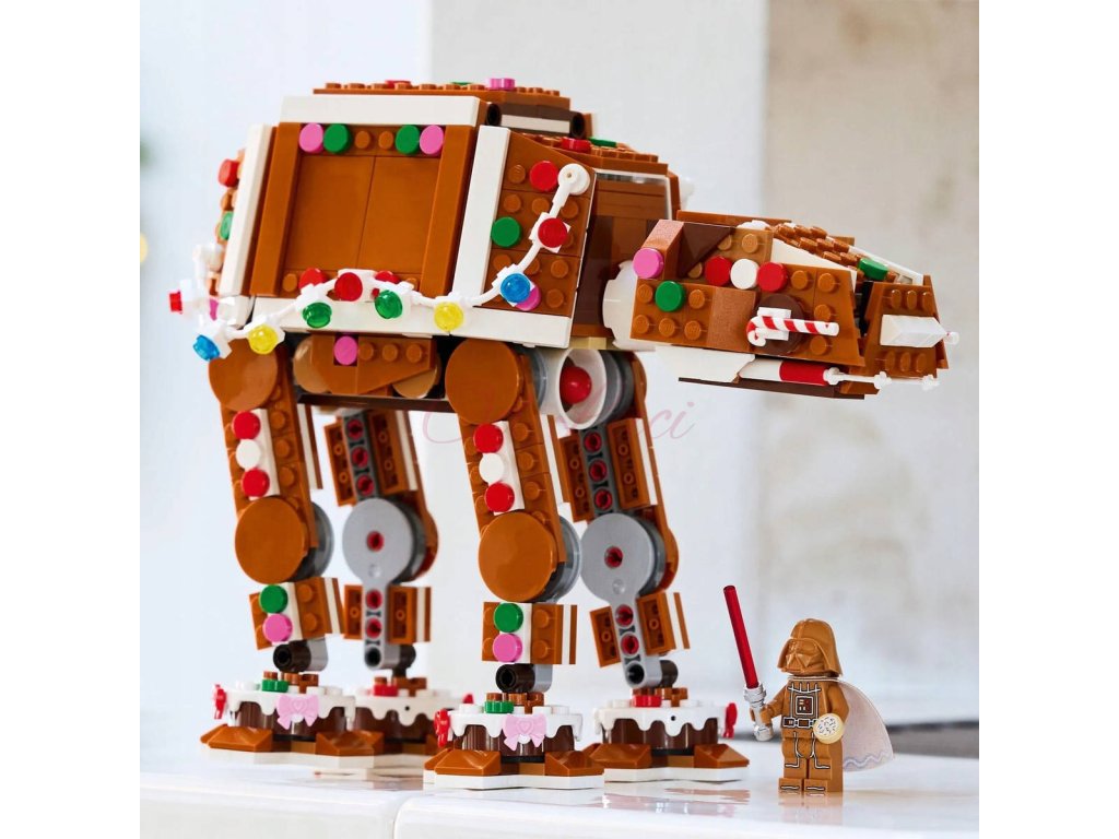 Inspirujte děti během svátků se stavebnicí LEGO® Star Wars™ (40806) Perníkový transportér AT-AT™, Dárek pro fanoušky. Tato kreativní vánoční stavebnice Star Wars je ideální pro kluky, holky a fanoušky od 10 let a obsahuje AT-AT s dekoracemi ve stylu perníkové chaloupky a minifigurku LEGO perníkového Dartha Vadera. Postavte nohy AT-AT, otevřete kokpit a vyklopte boky hlavní přihrádky, abyste odhalili útulný interiér: u krbu je místo pro Dartha Vadera, stůl, hrnek na pití, dílky v podobě sušenek a cukrové hůlky, hromada dárků, na zdi visí punčochy a nechybí další vánoční doplňky pro kreativní hraní.