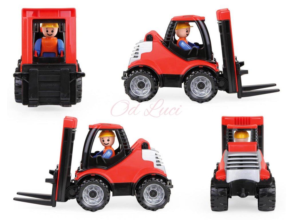 Truckies vysokozdvižný vozík z kvalitního plastu a velmi pevnou stavbou. Plně mechanicky funkční. Obsahuje odklopitelnou kabinu s aktivním panáčkem.
