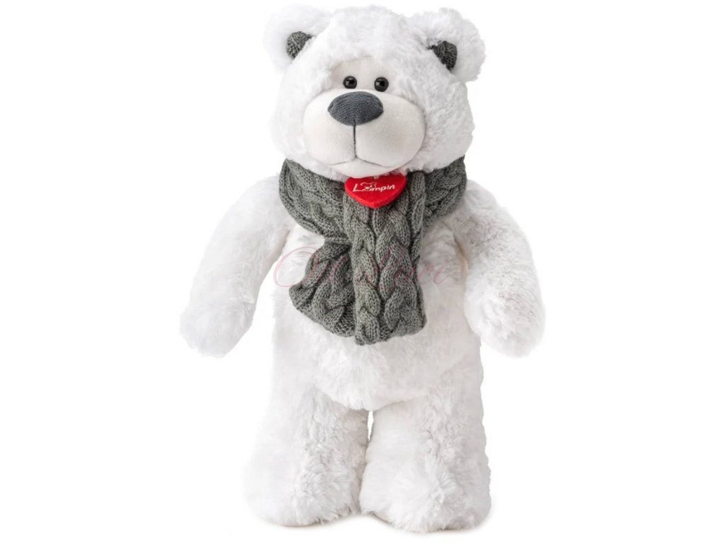 Plyšový bílý lední medvěd se šálou, kvalitní plyšák o velikosti 38cm od Lumpin, vhodný jako dárek na Valentýna, pro zamilované, z lásky.