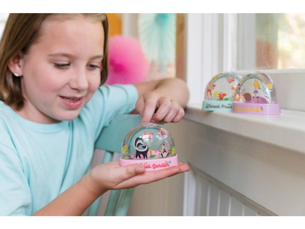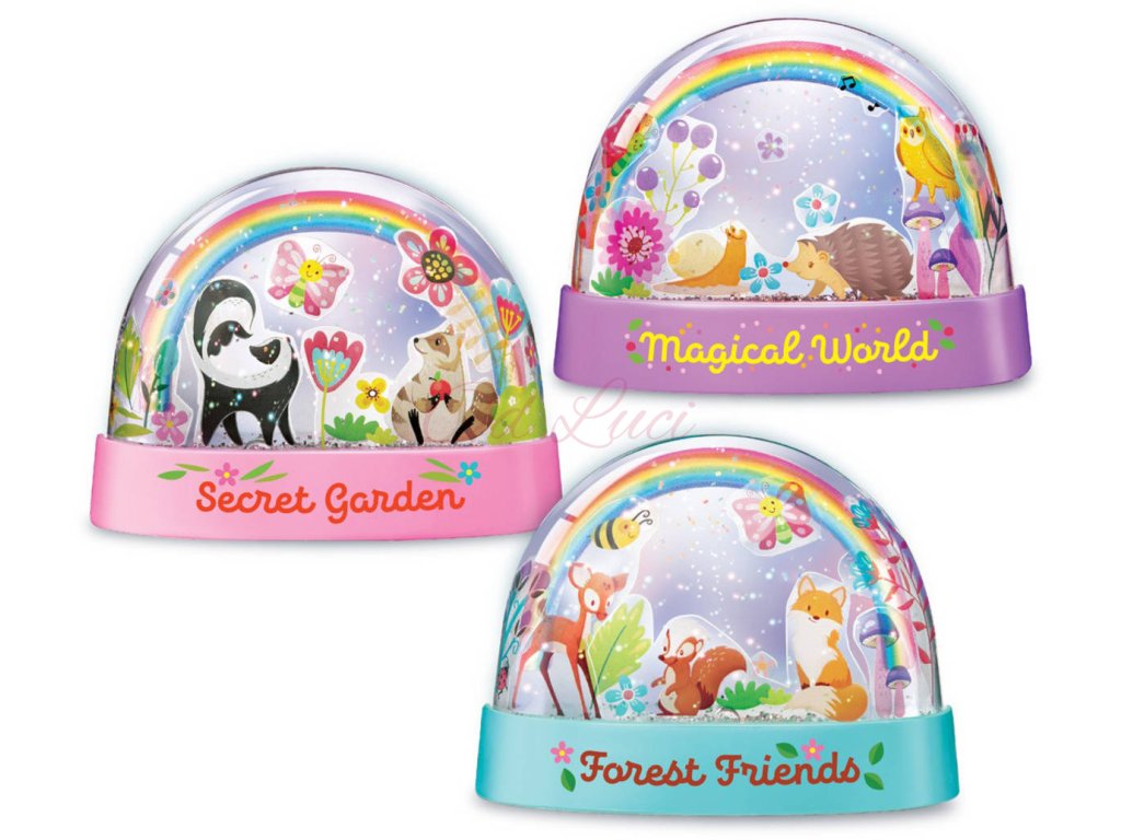 Lesklý a duhový efekt: Součástí sady jsou speciální třpytky, které ve vodě vytvářejí fascinující lesklý efekt, když se sněžítkem zatřese.