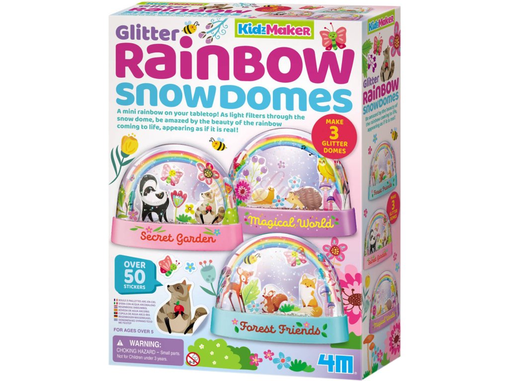 MAC TOYS 4M Duhová třpytivá sněžítka se zvířátky - kreativní sada pro děti, která jim umožňuje vytvořit si vlastní lesklá sněžítka se třpytivým efektem. Lze vytvořit 3 různá sněžítka.