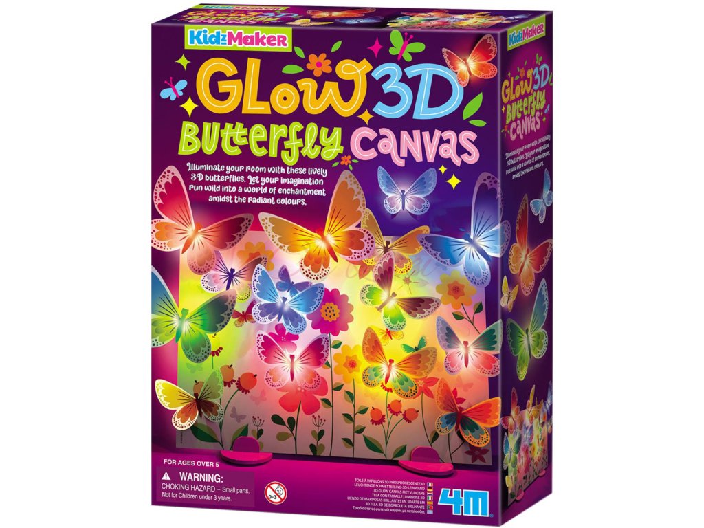 MAC TOYS 4M Svítící motýlí plátno - dětský kreativní set pro výrobu osvětlené 3D dekorace s motýly. Hračka na baterie, s LED světlem.