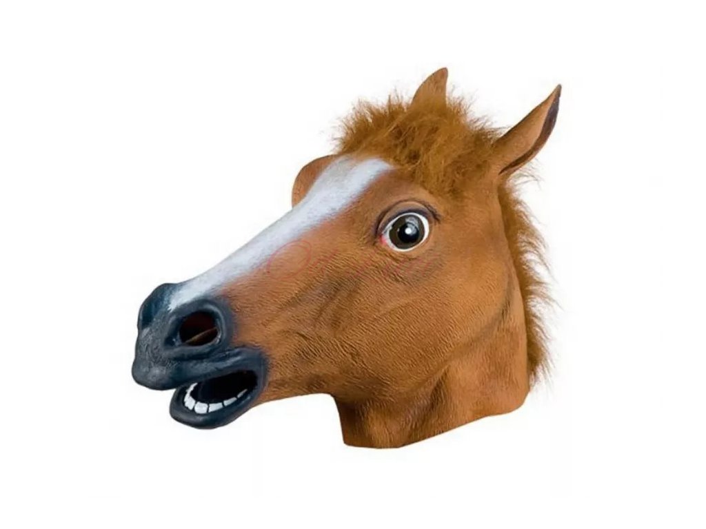 Maska koně celohlavová z latexu s dokonalou imitací koňské hřívy.