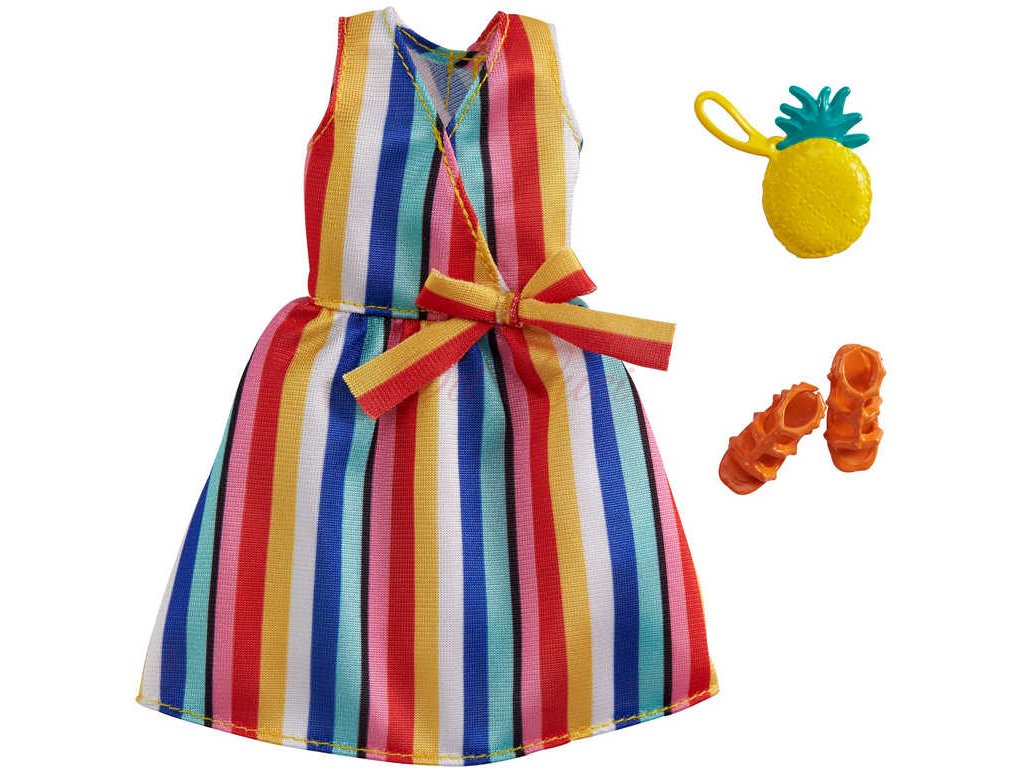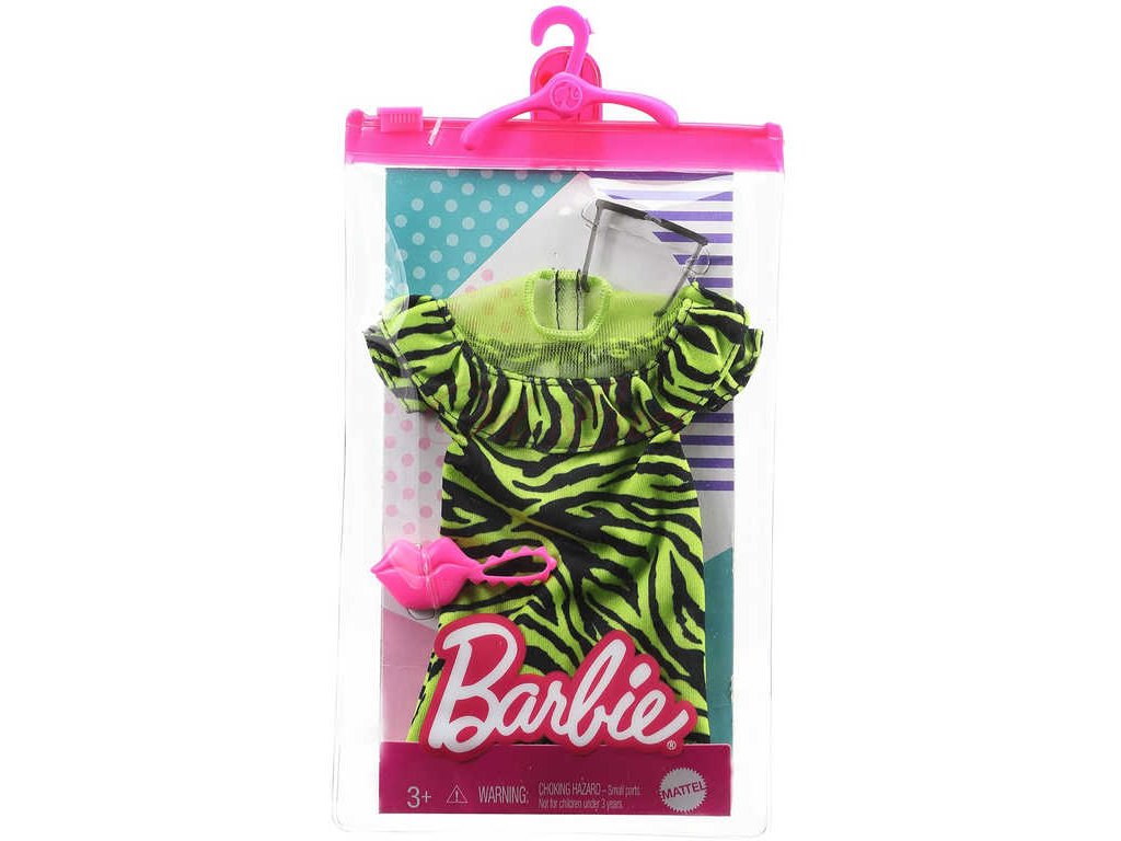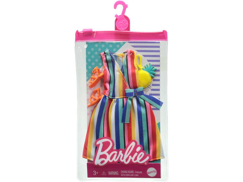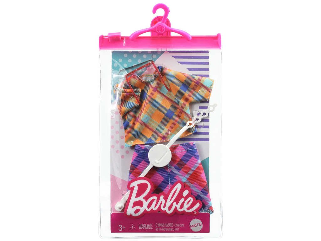panenku Barbie - šaty nebo svrchní a spodní část - a dvě doplňky pro dotvoření vzhledu; panenka se prodává samostatně. Kombinujte s dalším oblečením Barbie v řadě, abyste vytvořili odlišný