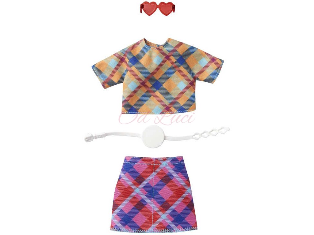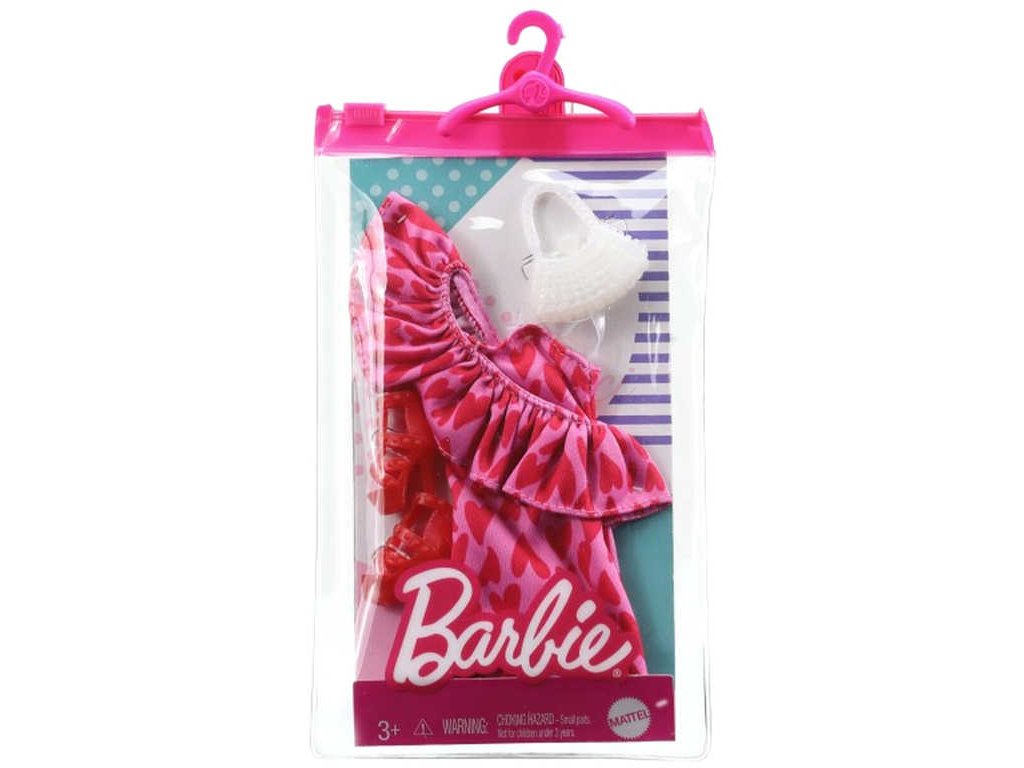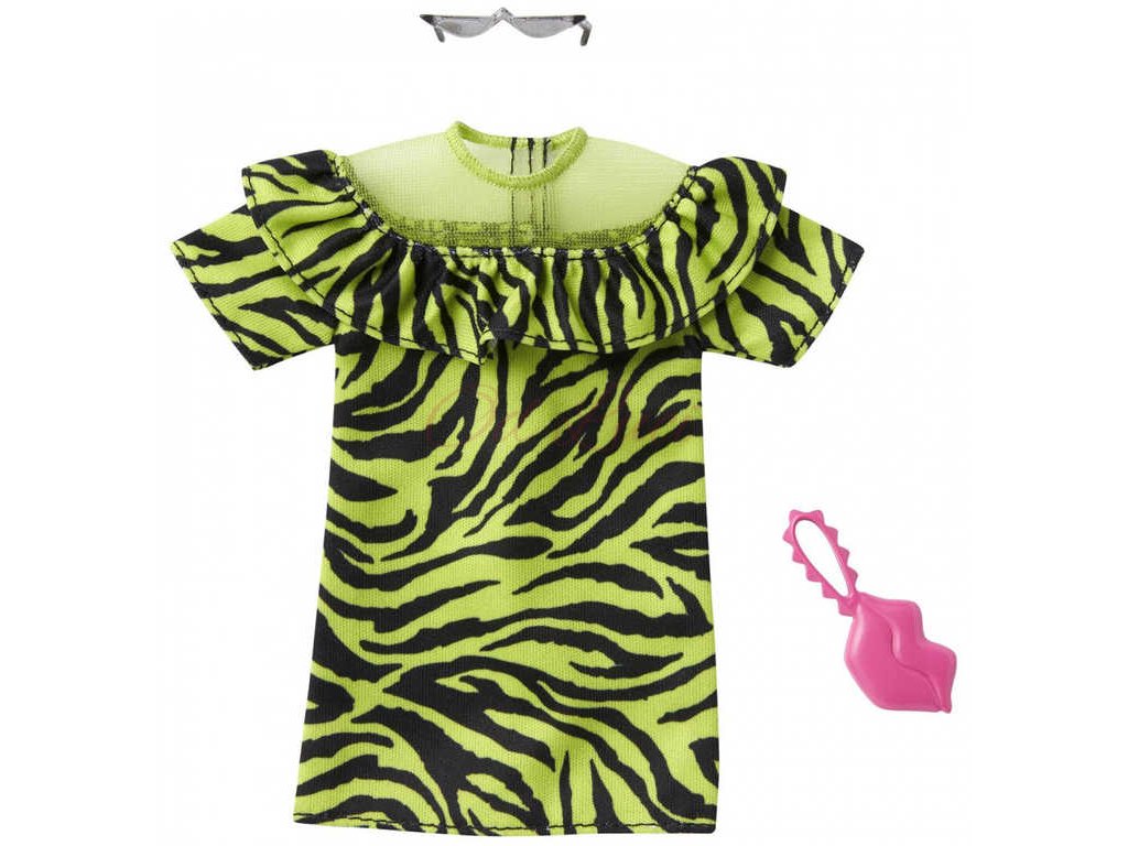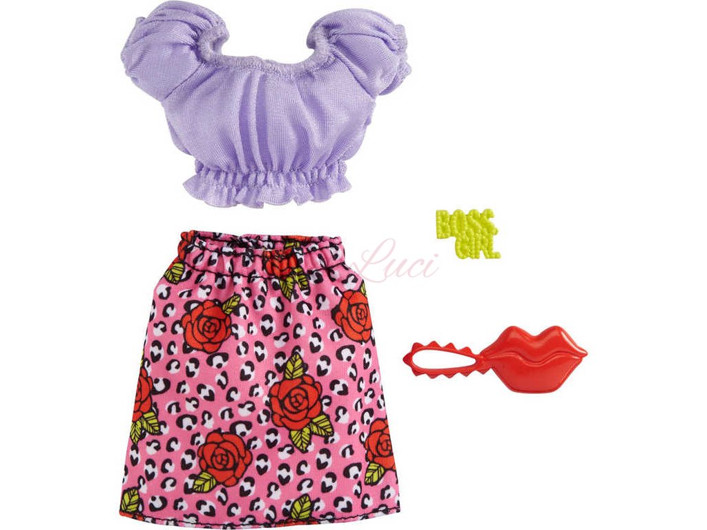 panenku Barbie - šaty nebo svrchní a spodní část - a dvě doplňky pro dotvoření vzhledu; panenka se prodává samostatně. Kombinujte s dalším oblečením Barbie v řadě, abyste vytvořili odlišný