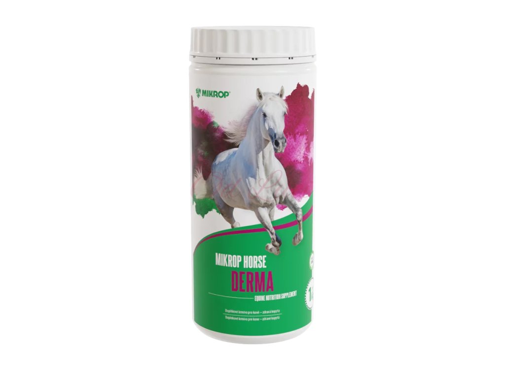 MIKROP® HORSE DERMA obsahuje komplex látek, které napomáhají růstu kopyt a udržují je zdravá. Produkt má nejvyšší obsah biotinu na trhu. Dále obsahuje DL-methion, esenciální aminokyselinu s obsahem organické síry; organicky vázaný zinek (chelátová forma) a vitamin B6. Tyto látky mají pozitivní vliv pro správný vývoj a rychlý růst kopytní rohoviny. Spolu s organicky vázanou mědí (chelátová forma) ovlivňují zdraví a kvalitu kůže a srsti.
