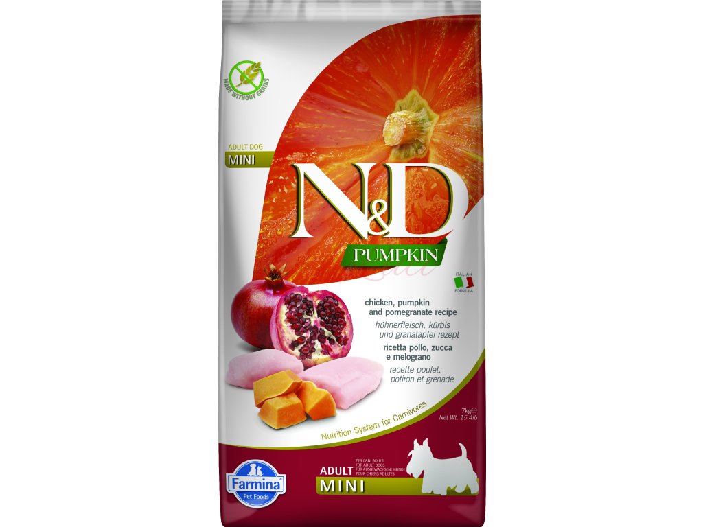 N&D Pumpkin Dog Adult Mini Chicken & Pomegranate Váhové možnosti: 7kg