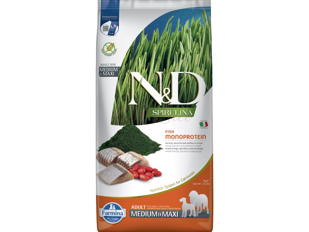 N&D Spirulina Dog Adult M/L Herring & Wolfberry 7kg