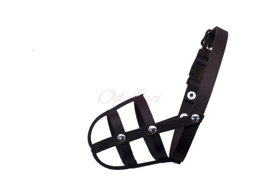 Náhubek je vyroben z proužků kůže. Spoje jsou připevněny nýty. Na horní části je všitý tlustý filc, pro větší pohodlí pejska. Zapínání je na plastovou přezku.